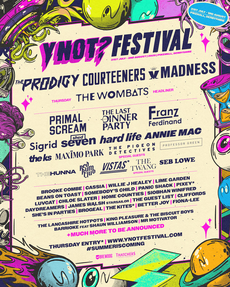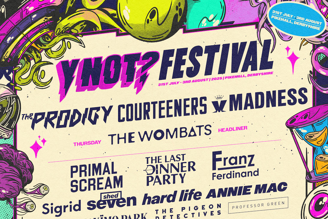 Today Y Not Festival reveal their headliners for 2025, alongside the first wave of what’s set to be a huge line-up. The eighteenth edition of the North’s prime festival is back on 31 July to 3 August – The Wombats will get the party started on Thursday, before a massive weekend of hits from headliners The Prodigy, Courteeners and Madness. Artists announced today include Primal Scream, The Last Dinner Party, Franz Ferdinand, Sigrid, Shed Seven, hard life, Annie Mac, the Ks, Maximo Park, The Pigeon Detectives, Professor Green, The Hunna, Red Rum Club, Vistas, The Twang and Seb Lowe and many more.