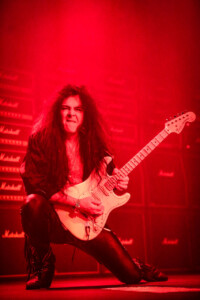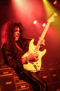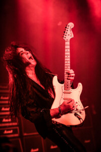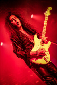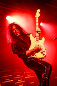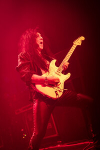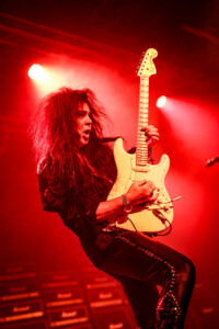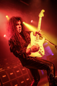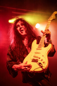Yngwie was on fine form, even if his beautiful collection of vintage Strats weren’t quite playing ball, as the man himself kept saying the guitars seem to have jet lag! Minor tuning issues most likely due to the the dramatic climate shift travelling across the globe and the lack of time between gigs to settle back down and have the guitar tech make all those necessary adjustments to allow these gorgeous instruments to sing. Not that anyone in the crowd really would have been aware, but Yngwie can hear those minor imperfections and his untouchable high standards mean a nod to the guitar tech, (that poor guitar tech) to bring another buttercream Strat out and switch them over. I actually lost track how many changes of guitar happened as part of the set anyway as it was substantial number, then there were quite a few more on top as Northern Ireland’s glorious climate messed with Yngwie’s mojo a little more. In fairness he took it all in his stride and the crowd enjoyed the interaction between Yngwie and his guitar tech (that poor guitar tech), it was all part of the showmanship that comes with an YJM live show, and what a show. As I mentioned before it was a total blast from the past, Yngwie mixed old classics like ‘Now Your Ships Are Burned’ with some newer tracks like ‘Wolves At The Door’ from 2021’S Parabellum album, there literally was everything in-between. Even in short bursts we got teasers and snippets of old classic tracks tossed in between full songs and it a glorious display both of musicality from one of rocks greatest guitarists, his ability to switch on a dime from one track to another with ease all at blistering speed as he only knows how.