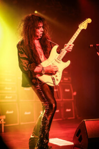 One thing that was obvious throughout the whole show was just the level of concentration of Yngwie’s band as they watched him like a hawk, or in this case three hawks all sweating wondering “What is he going to do next?” (That poor band) I jest of course, Yngwie does what Yngwie does and you can tell unlike Satch, Vai etc this show is an ethereal experience, it blooms and grows and every show will be different depending on where Yngwie will want to go from night to night, tonight for example we got treated to a Deep Purple cover of ’Smoke On The Water’ and Hendrix’s ‘Redhouse’ neither of which was on the setlist below Yngwie’s feet, so be like a Boy Scout and be prepared for anything! What will you get come this weekends performance at HRH? I don’t even know if Yngwie knows! But it’s going to be fucking great! The guitar work is mesmerising, hard to comprehend at times, I watch Yngwie’s hands move and there are more notes that I can process in such a short time, I am glued to his picking hand to see how he does it, watch his left hand glide from one end of the fretboard to another and just can’t keep up. Like many of our guitar heroes these guys and dolls just are another level. This is why we are all here tonight, celebrating our love for one of the greatest, one of the most unique masters of his instrument, I hear people screaming out song titles, desperate to hear their favourites, Yngwie tosses out guitar picks like sweets at halloween to the trick or treaters and fans clamber to snatch them out of the sky, failing miserably but this all part of the journey of an YJM gig!